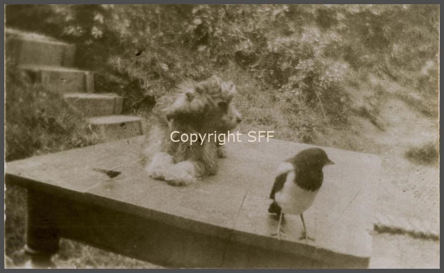 Cane e uccellino sopra il tavolo nell'inverno del 1916