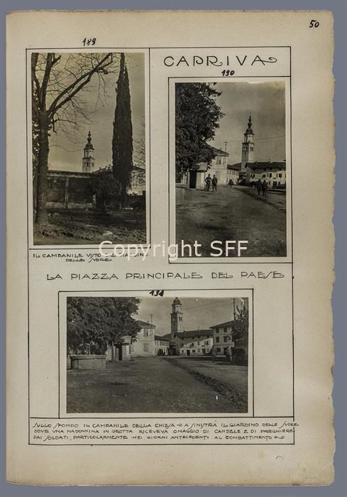 Il campanile e la piazza principale del paese di Capriva dove nell’ottobre del 1915 la 7^ Batteria someggiata stabilì la sede del proprio comando.