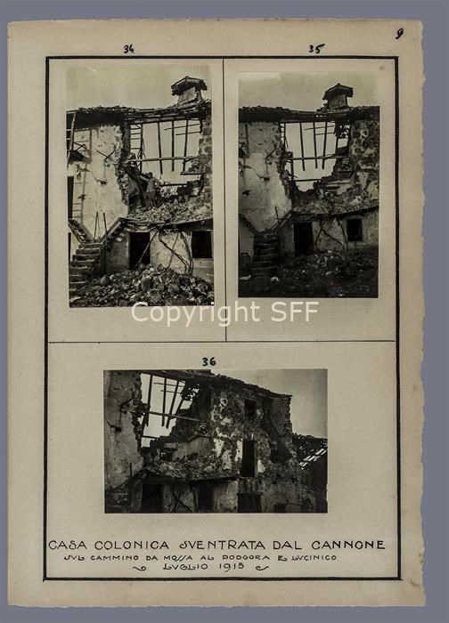 Danni causati dai bombardamenti agli edifici civili situati tra Mossa e Lucinico verso il Monte Calvario [Podgora]