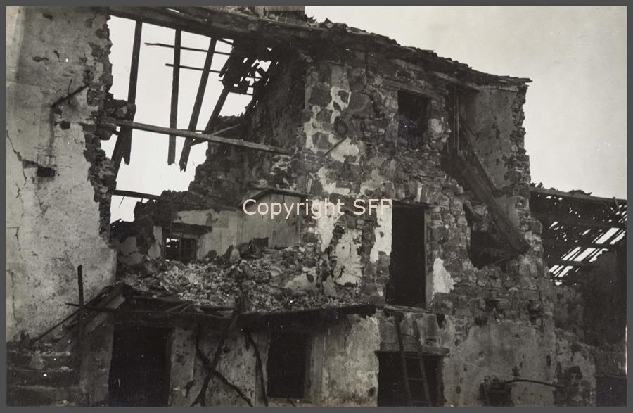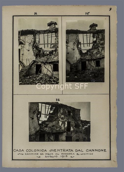 Casa colonica sventrata dal cannone/ sul cammino da Mossa al Podgora e Lucinico/ Luglio 1915