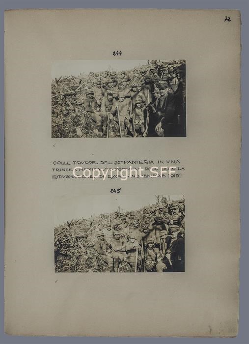 Colle truppe del 35° fanteria in una trincea nemica sul Podgora
