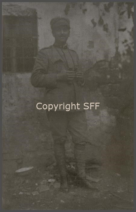 Ritratto a figura intera del S. Ten. XXX (7ª Batteria Someggiata). Scatto eseguito nelle retrovie a Mossa nell'estate del 1915.