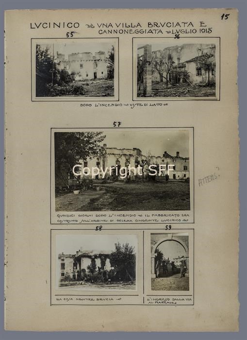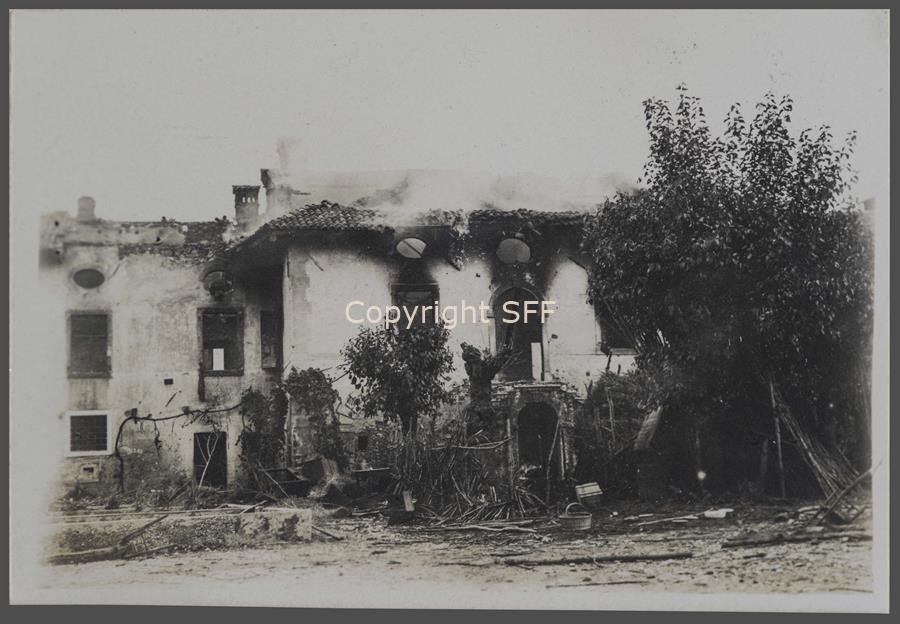 Villa di campagna (Villa Fausta) ripresa negli scatti del luglio 1915 durante l'incendio