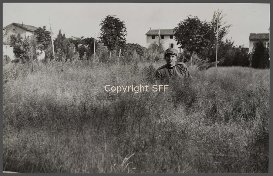 Ritratto del S. Tenente tra l'erba alta di un campo da tennis in prossimità dell'abitato di Lucinico nell'agosto del 1915.