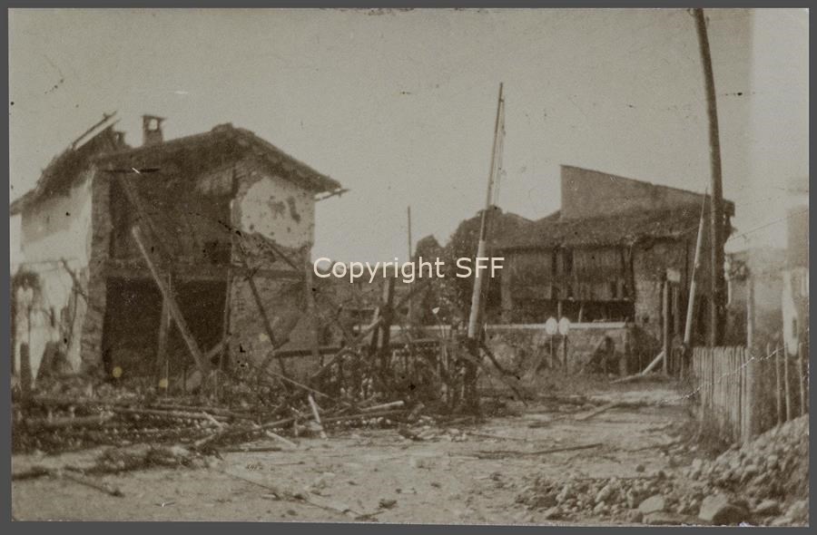 Edifici bombardati a Lucinico ripresi nel luglio del 1915