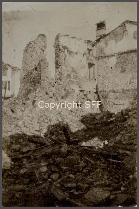Edifici bombardati a Lucinico ripresi nel luglio del 1915