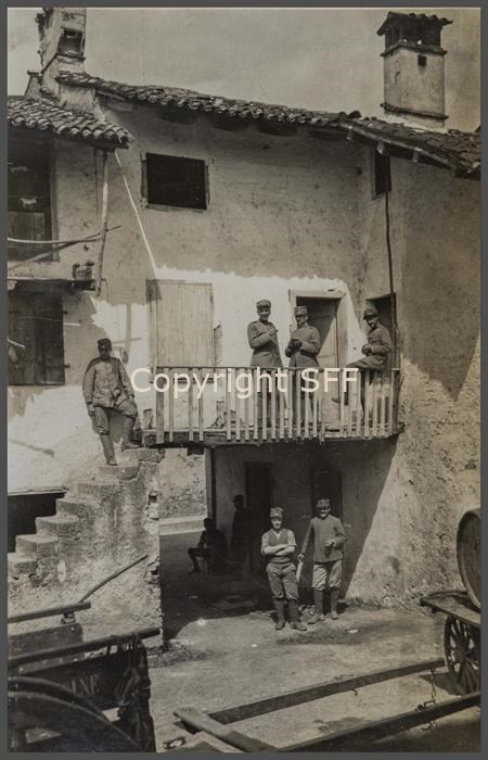 Il cascinale a Mossa dove alloggiarono gli ufficiali della Batteria. Sulla scala il soldato Colombo detto "maria"