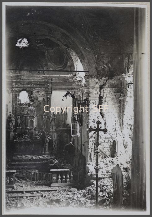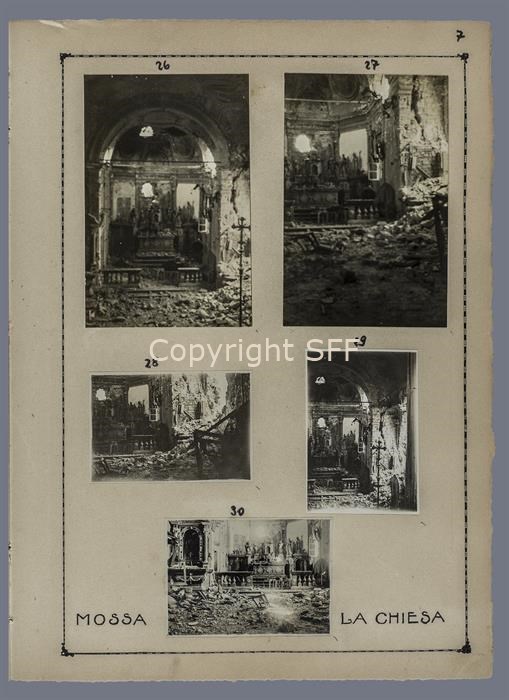 Interno della chiesa di Mossa danneggiata dai bombardamenti