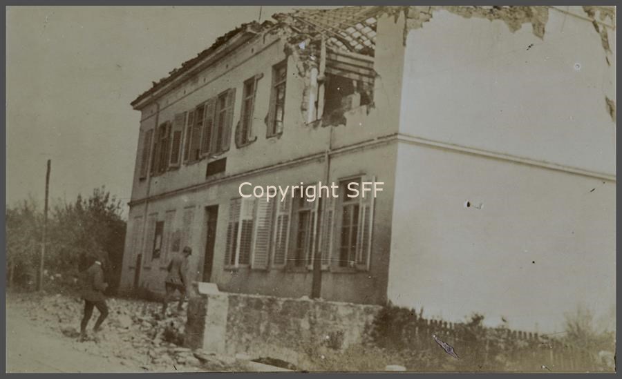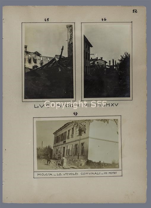 Edificio scolastico bombardato a Mossa ripreso nel luglio del 1915