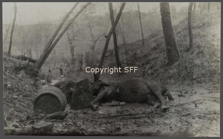 Podgora - Autunno MCMXV - Due muli dei pez/ zi della Batteria uccisi da sharpnel nemico