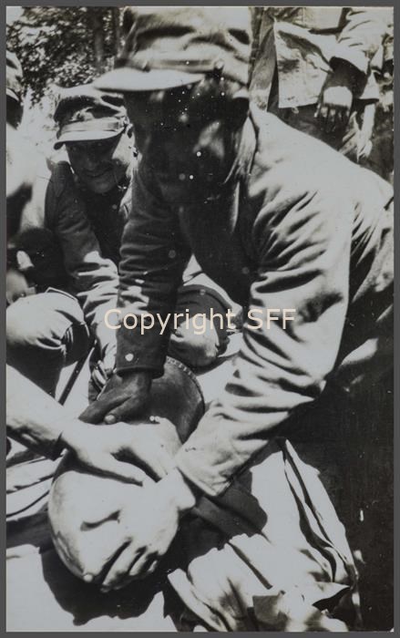 Gruppo di soldati attorno ad una bomba austriaca ritrovata sul Monte Calvario [Podgora] nell'estate del 1915
