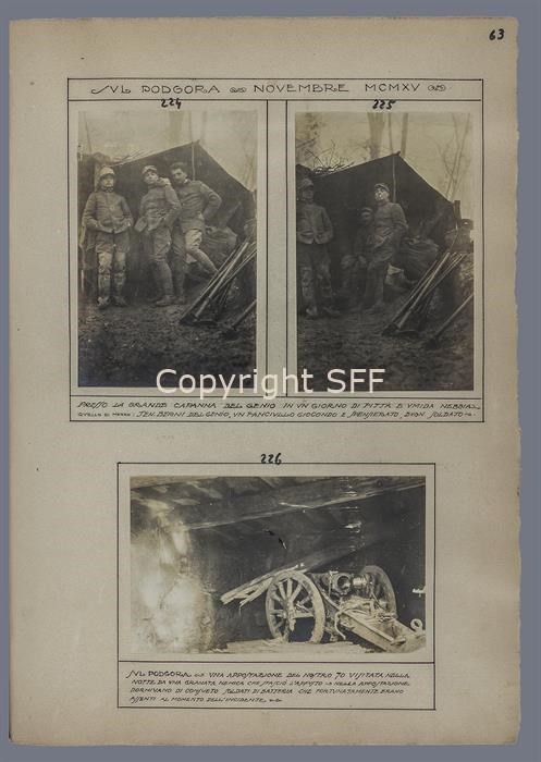 Postazioni e ricoveri. Gruppi di militari ripresi in prima linea tra gli accampamenti sul Monte Calvario [Podgora] nel mese di novembre del 1915