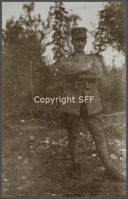 Ritratto a figura intera del Ten. Bugni (7ª Batteria Someggiata). Scatto eseguito nelle retrovie a Mossa nell'estate del 1915.