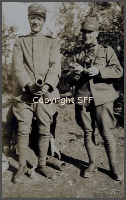 Il Ten. Rivalta (7^ batteria someggiata) e il Ten.te Osservatore di artiglieria (batteria Marchionni) in posa a Quota 99 del Monte Calvario [Podgora] nell'Ottobre del 1915