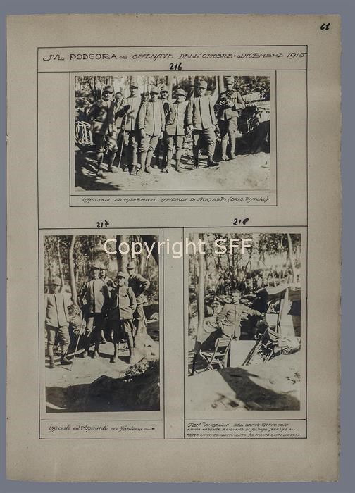 Ritratto del Ten.te Angelini del Genio zappatori è stato eseguito tra ottobre e dicembre 1915 sul Podgora, durante il periodo in cui si sono svolte le offensive conosciute anche come la terza e la quarta battaglia dell’Isonzo. Le cosiddette battaglie autunnali si combatterono rispettivamente tra il 18 ottobre ed il 4 novembre, e tra il 10 novembre ed il 2 dicembre. Angelini fu ferito al petto in un combattimento sul fronte Cappelletta