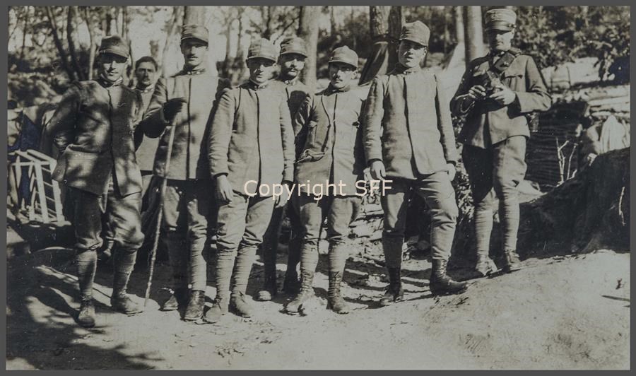 Ufficiali ed aspiranti ufficiali della brigata Pistoia (35° e 36° reggimento fanteria) a cui era aggregata la sezione di cannoni da 70 mm denominata “del Podgora”. Apparteneva a questa brigata anche l’autore dell’album S.Tenente XXX. Il ritratto di gruppo è stato eseguito tra ottobre e dicembre 1915 sul Podgora, durante il periodo in cui si sono svolte le offensive conosciute anche come la terza e la quarta battaglia dell’Isonzo. Le cosiddette battaglie autunnali si combatterono rispettivamente tra il 18 ottobre ed il 4 novembre, e tra il 10 novembre ed il 2 dicembre.