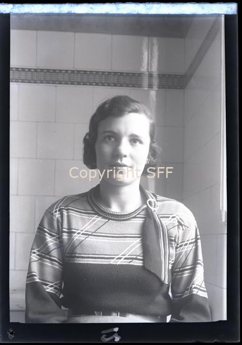Ritratto di Carmen Runco, nipote di Pellis. La ragazza è ripresa frontalmente da seduta in ambiente domestico, forse una cucina