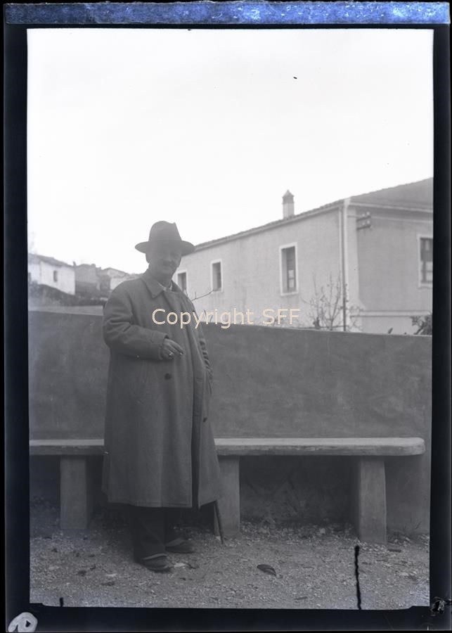 - Ritratto a figura intera del Cavaliere Pisano ripreso accanto ad una panchina e ad un muretto nell'abitato di Dorgali dove riveste il ruolo di segretario