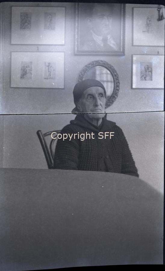 Ritratto di un'anziana donna della famiglia Carletti. La donna è ripresa da seduta accanto ad un tavolo. La foto è stata scattata in ambiente domestico