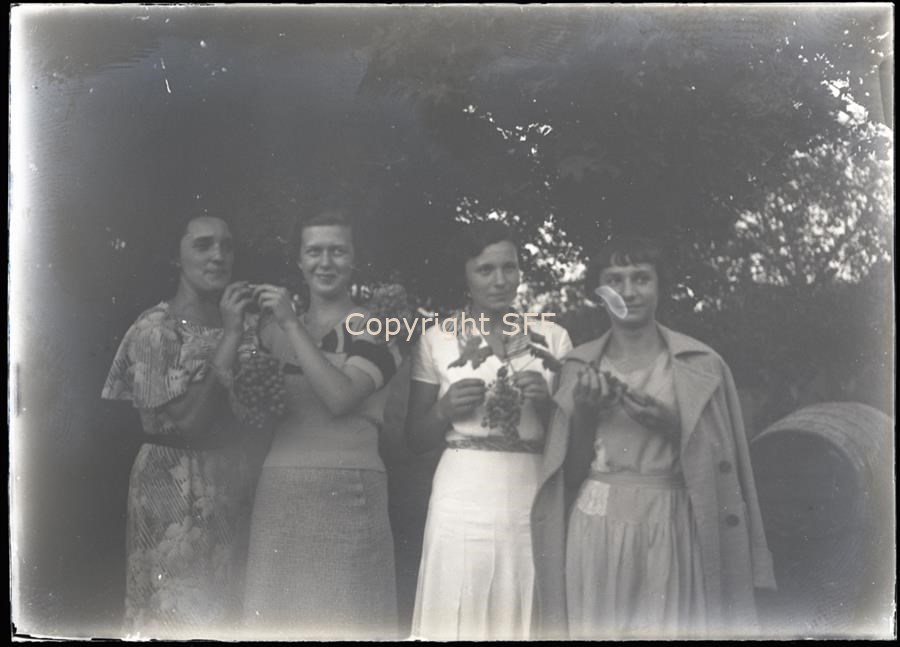 - Ritratto di gruppo delle quattro nipoti di Pellis. Le ragazze, che portano il cognome di Runco, sono riprese in piedi mentre tengono in mano dei grappoli d'uva, in un giardino in località Pisino [Pazin]