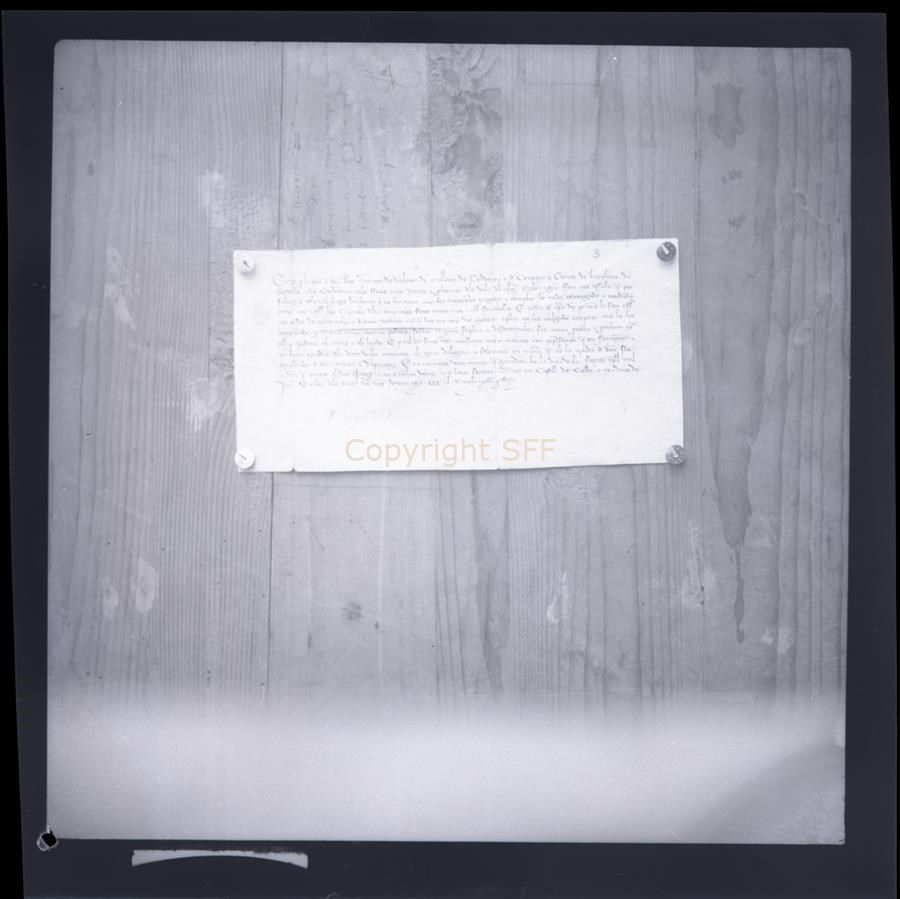 - Scatto eseguito per riprodurre un documento medievale, un manoscritto in lingua veneta (?). Il foglio con il messaggio รจ fissato su delle assi di legno.
