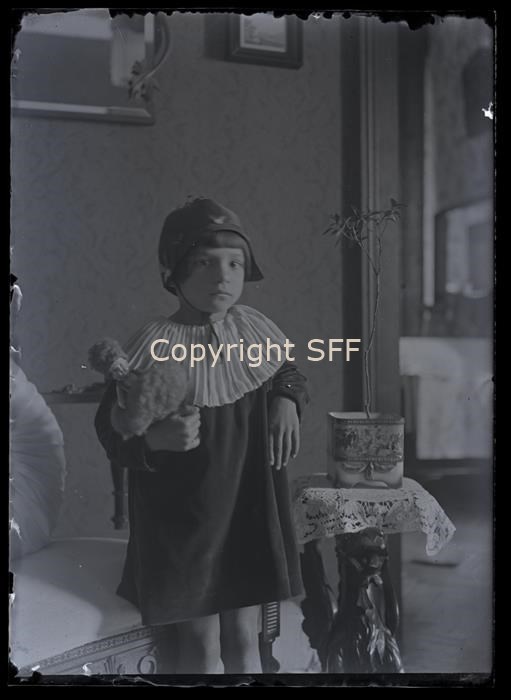 Ritratto di Natalia Runco, nipote di Ugo Pellis. La bambina, ripresa a tre quarti di figura, è ritratta in ambiente domestico