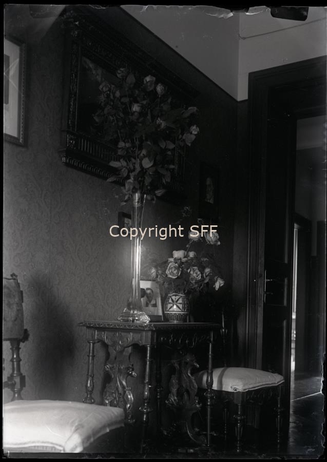 Interno di un'abitazione. L'immagine si focalizza su due vaso di rose
