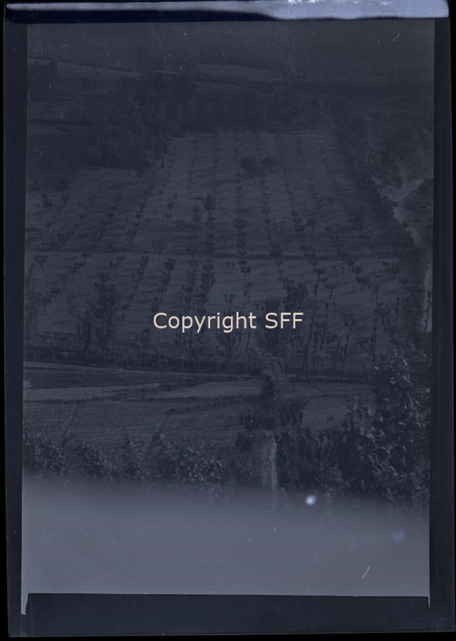 Paesaggio collinare con file ordinate di alberi suggeriscono la presenza di una coltivazione