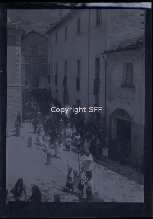 La processione religiosa lungo le vie del borgo e il suo rientro in chiesa