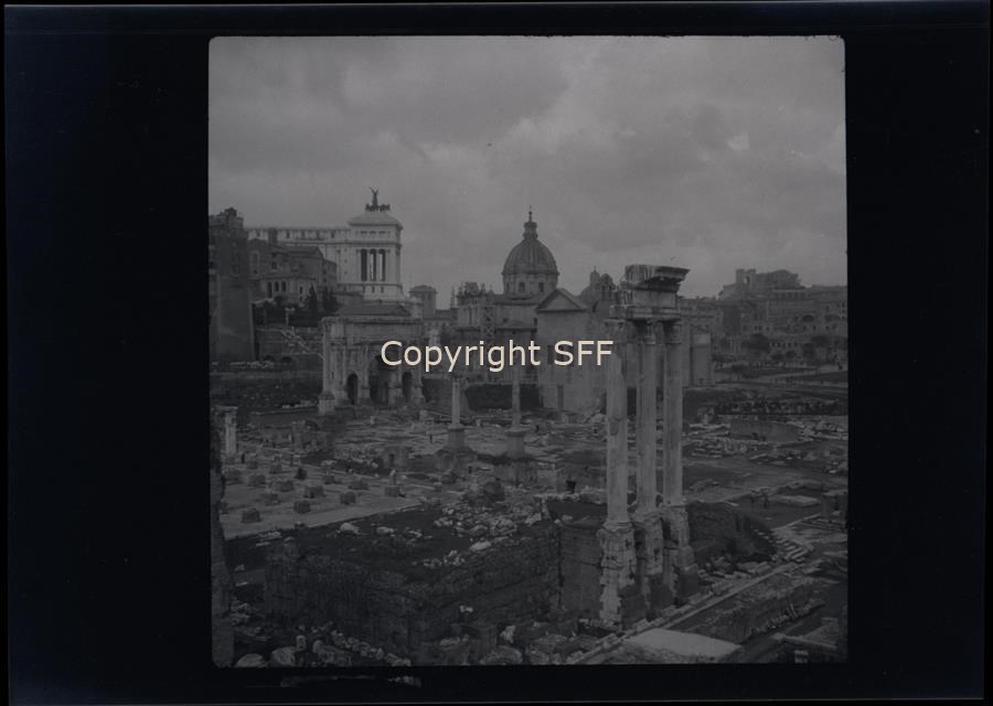 Veduta panoramica del centro di Roma, in cui sono in evidenza i Fori imperiali, il Vittoriano e la chiesa dei santi Luca e Martina
