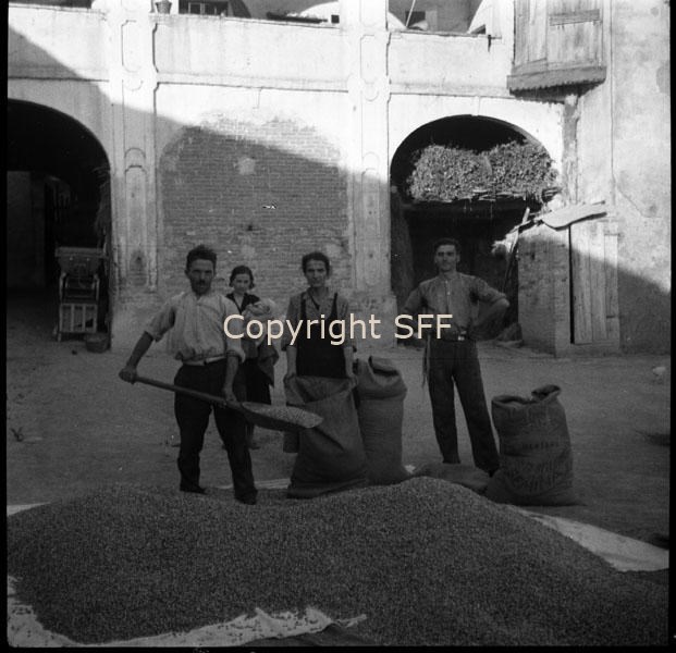 Al lavoro nell'aia: pala e granturco sul lenzuolo ad asciugare