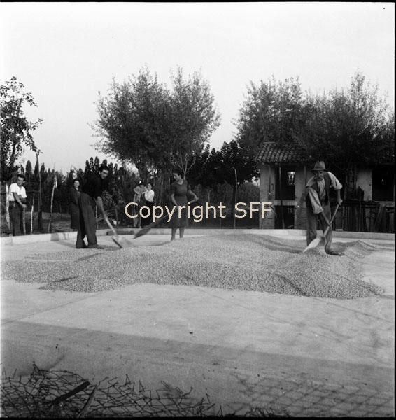Ammassamento del granturco: contadini al lavoro nell'aia