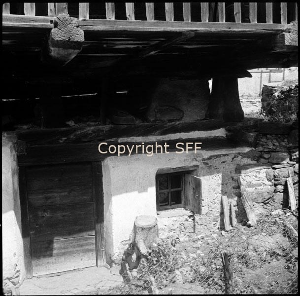 Particolare di casa in muratura e legno