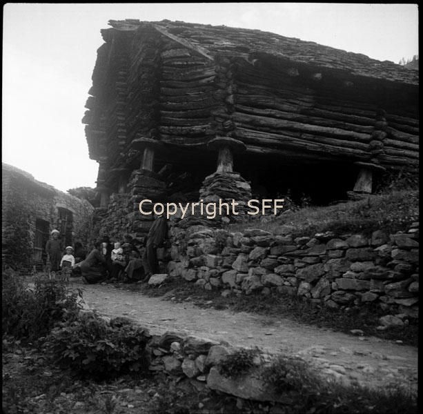 - Magazzino (utilizzato per l'essicazione della segale e del grano e per la conservazione del pane) in pietra e legno con copertura in lastre di pietra e pilasti a forma di fungo per isolare la struttura dal terreno