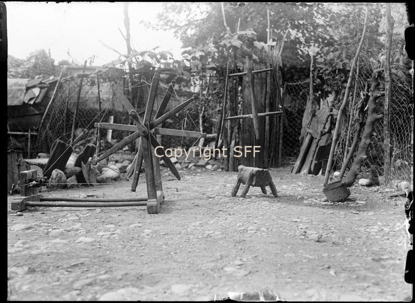 - Un arcolaio, strumento per ridurre le matasse di lana o altri filati in gomitoli, e un mulinello, strumento formato da una puleggia utilizzato nella filatura a mano