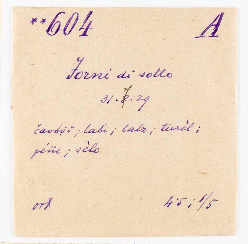 Tabio: tavola munita di sgocciolatoi sulla quale, nelle casere carniche, si pone il formaggio appena immesso nella forma; talz: assicella di faggio incurvata a cerchio nella quale si pone la pasta del cacio per darle la forma; sele: secchio a doghe di legno o di ferro stagnato con manico di ferro a semicerchio in cui si raccoglie il latte munto
