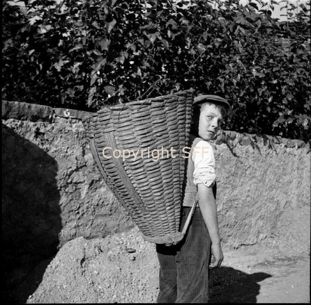 Bambino con gerla in spalla