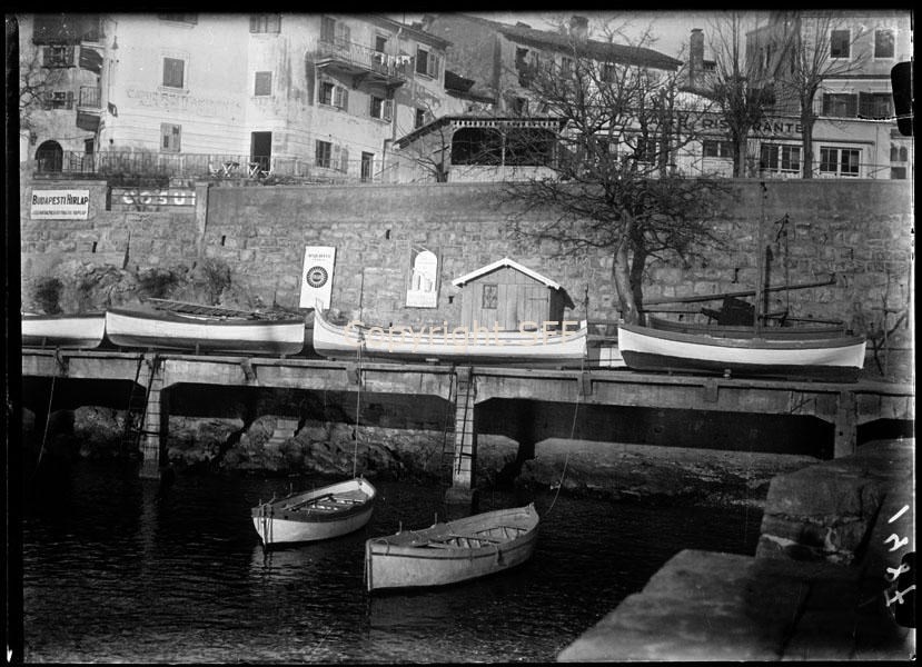 - Sul pontile: barchetta, gondola: imbarcazione con scafo slanciato e asimmetrico a fondo piatto, manovrata con un solo remo da un rematore in piedi; guzzo: imbarcazione priva di ponte, prende il nome di "guzzo" ("guzzo adriatico" da non confondere con altri tipi di guzzo presenti in altri mari). Impiegato originariamente nella pesca minore, ha fatto buon servizio come imbarcazione da diporto sia in Quarnero, dov'era maggiormente diffuso nelle stazioni climatiche, sia a Trieste che nelle acque istriane