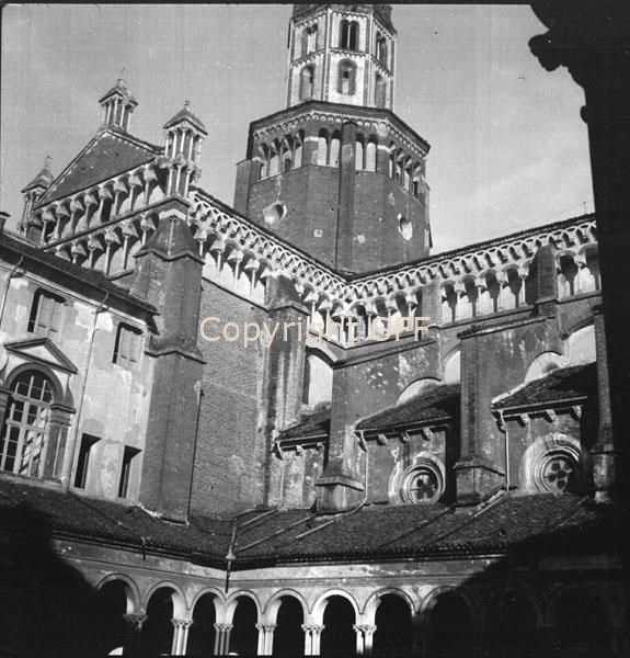 Basilica di Sant'Andrea a Vercelli: chiesa e campanile ripresi dal chiostro