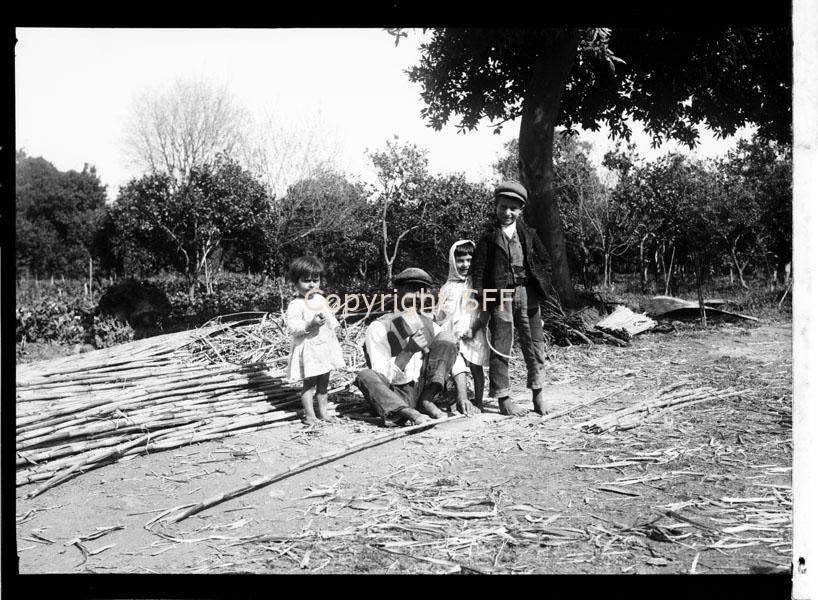 - Uomo che batte le canne utilizzate per costruire le stuoie montate sui carri agricoli con funzione di riparo