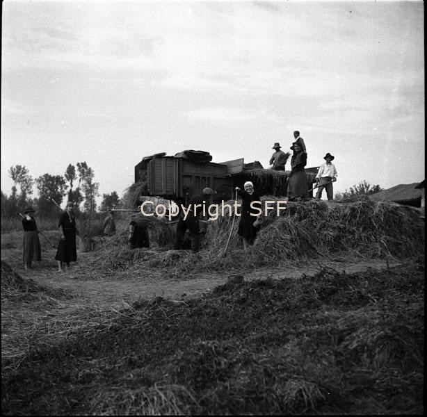 - Ritratto di contadini ripresi mentre utilizzano una macchina specializzata nella battitura del riso
