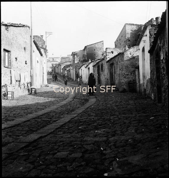 Strada all'interno del paese e case in muratura