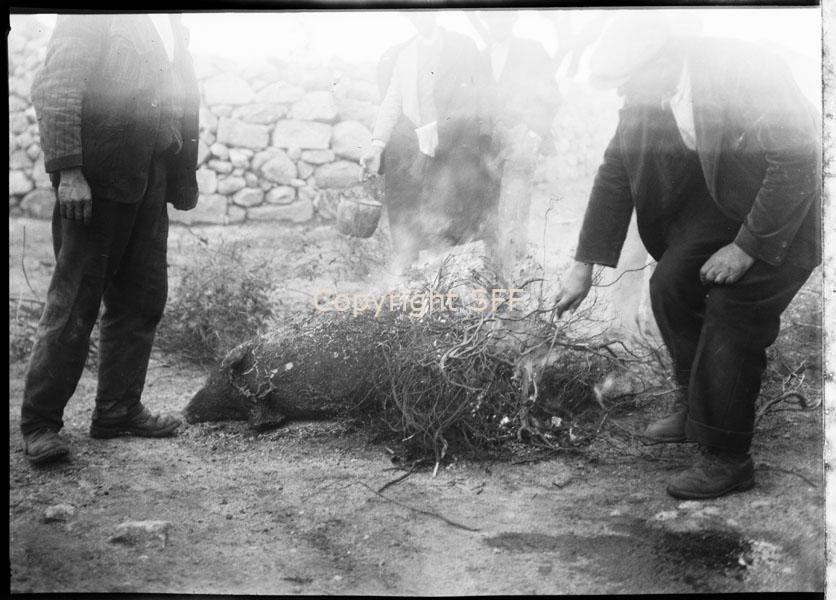 Lavori contadini - Pelatura del maiale