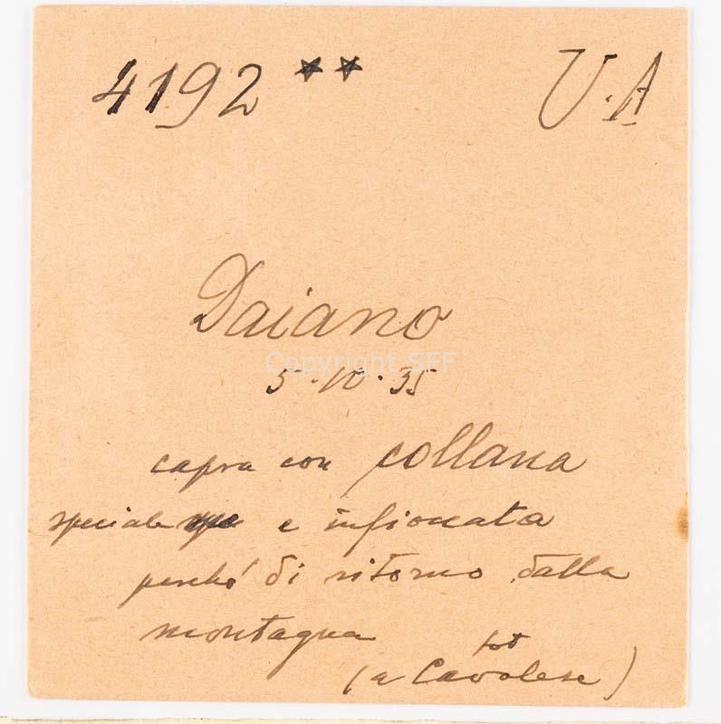 Capra con collana di ritorno dalla montagna
