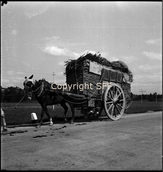 - Carro da carico a due ruote con alte sponde laterali e cestoni quadrangolari sul piano di carico utilizzati per il trasporto di diversi materiali