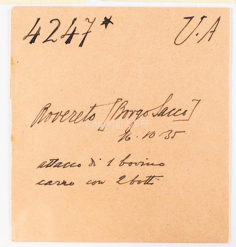 Carro a trazione animale condotto da un uomo in transito in paese: attacco e carico