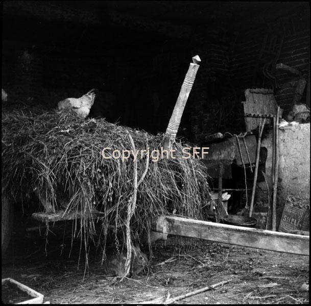 - Carro a due ruote con carico di fieno; nella parte anteriore, sporgente, è visibile la scaletta