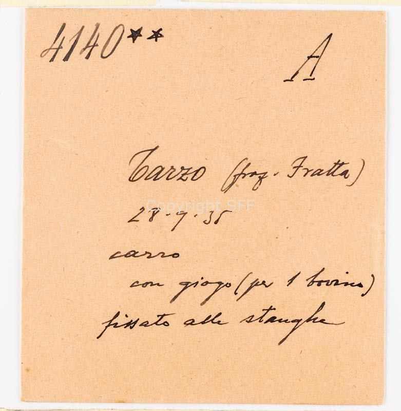 - Carro da carico a quattro ruote con sponde laterali inclinate e attaccatura (stanga) con giogo per un bovino