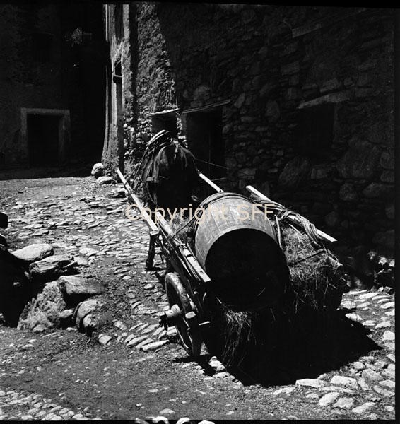 Carro da carico con barile trainato da un mulo
