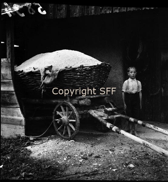 Carro da carico con cesto colmo di segatura